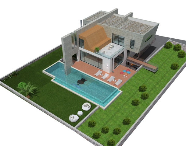 Projenin mimari konseptinde “mavi ve yeşilin birlikteliğini” sağlamak amacıyla tüm villalar çam agaçlarının altinda muhteşem deniz manzarası ile konumlandırılmıştır. Mahremiyetini koruyan her villanin önündeki terastan ulaşılan özel havuzu ve araç park alanı bulunmaktadır.